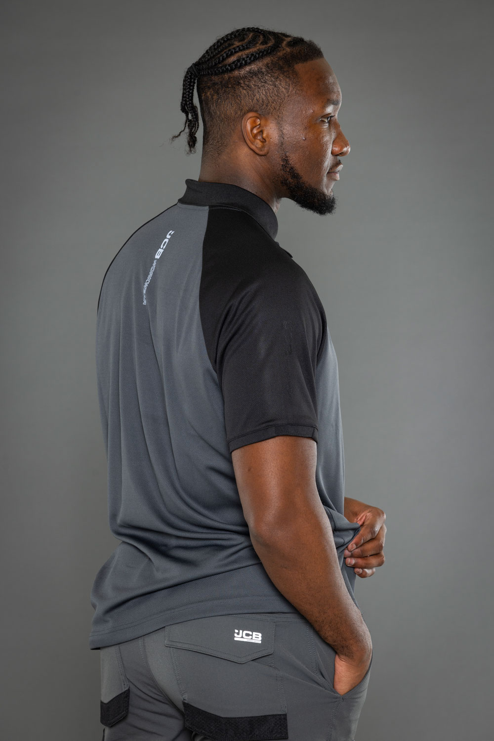 JCB branding on right sleeve and nape of neck